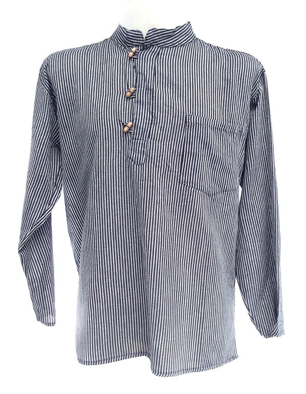Koszula w stylu nepalskim z długim rękawem i kołnierzykiem stójką.