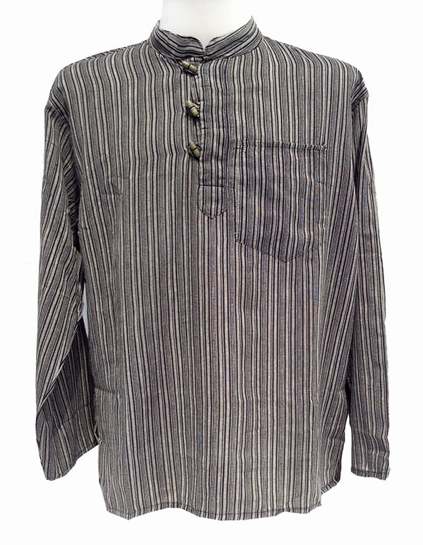 Koszula w stylu nepalskim z długim rękawem i kołnierzykiem stójką.