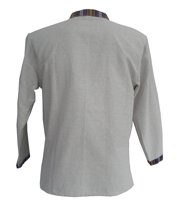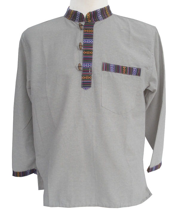 Koszula w stylu nepalskim z długim rękawem i kołnierzykiem stójką.