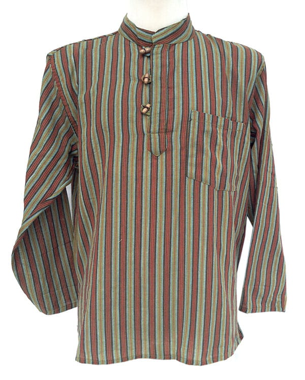 Koszula w stylu nepalskim z długim rękawem i kołnierzykiem stójką.