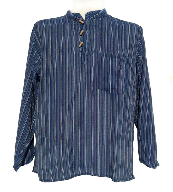 Koszula w stylu nepalskim z długim rękawem i kołnierzykiem stójką.