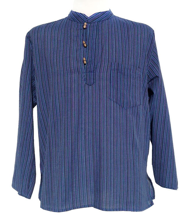Koszula w stylu nepalskim z długim rękawem i kołnierzykiem stójką.