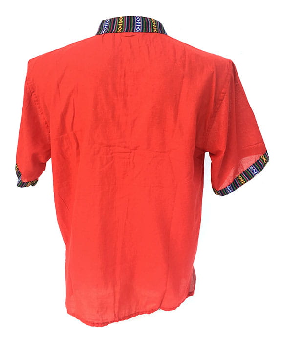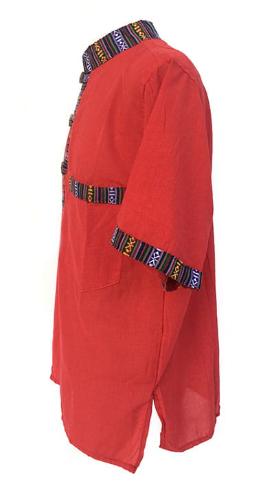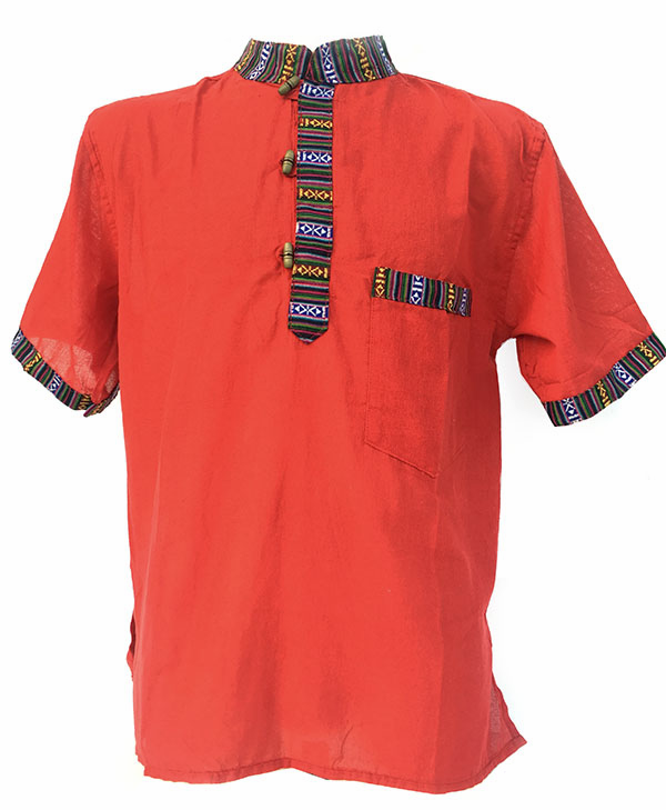 Koszula w stylu tybetańskim z krótkim rękawem i kołnierzykiem stójką.
