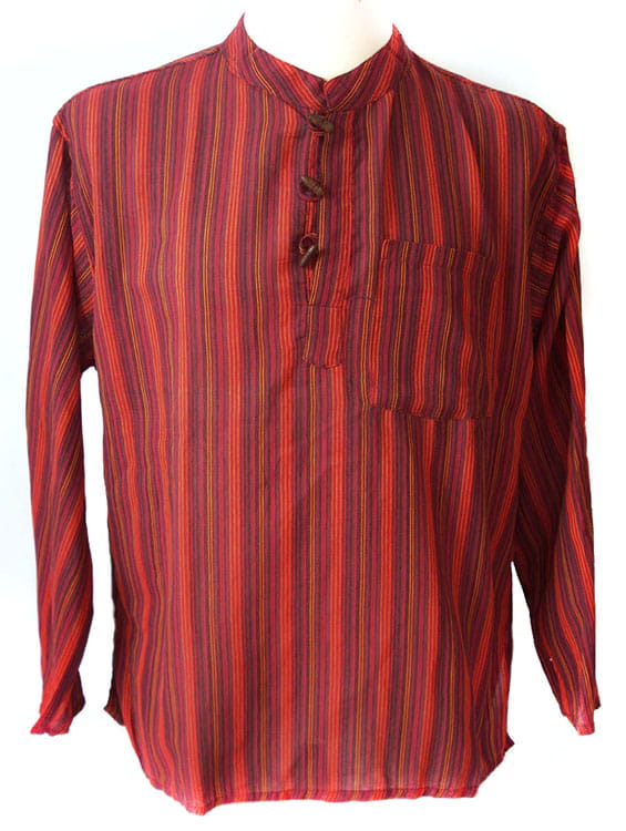 Koszula w stylu nepalskim z długim rękawem i kołnierzykiem stójką.
